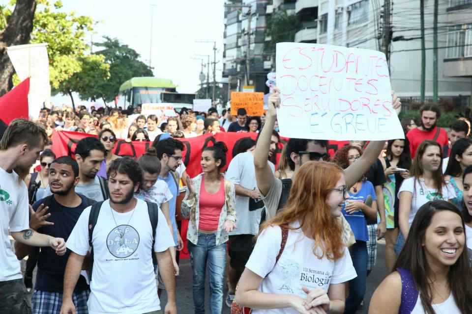 Na UFRJ, mais de mil estudantes participaram da histórica assembleia que deliberou greve. Eles reivindicam melhorias na estrutura da universidade. O curso de gastronomia, por exemplo, criado em 2008 pelo Reuni, ainda não tem salas de aula e laboratórios, e suas atividades são desenvolvidas dentro da biblioteca. Os estudantes da UFRJ querem também a conclusão das obras da residência estudantil — a reforma do bloco feminino, prevista para dezembro do ano passado, está com novo prazo para outubro deste ano. As unidades isoladas do centro reivindicaram a necessidade imediata de uma alternativa de emergência para a alimentação.