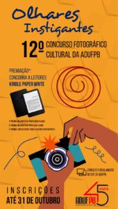 Continuam abertas as inscrições do 12º Concurso Cultural de Fotografia da ADUFPB – Edição 2023, atividade promovida pelo Sindicato dos Professores da UFPB para estimular o talento artístico e a criatividade fotográfica dos docentes filiados à entidade. Este ano, as melhores imagens inscritas no concurso farão parte de uma exposição fotográfica prevista para as comemorações dos 45 anos de fundação da ADUFPB. Uma comissão editorial vai avaliar as imagens inscritas e os autores das duas melhores fotografias serão premiados. O prazo de envio das fotos será até as 23h59 do dia 31 de outubro, próxima terça-feira. Não perca tempo e inscreva o quanto antes suas fotos!