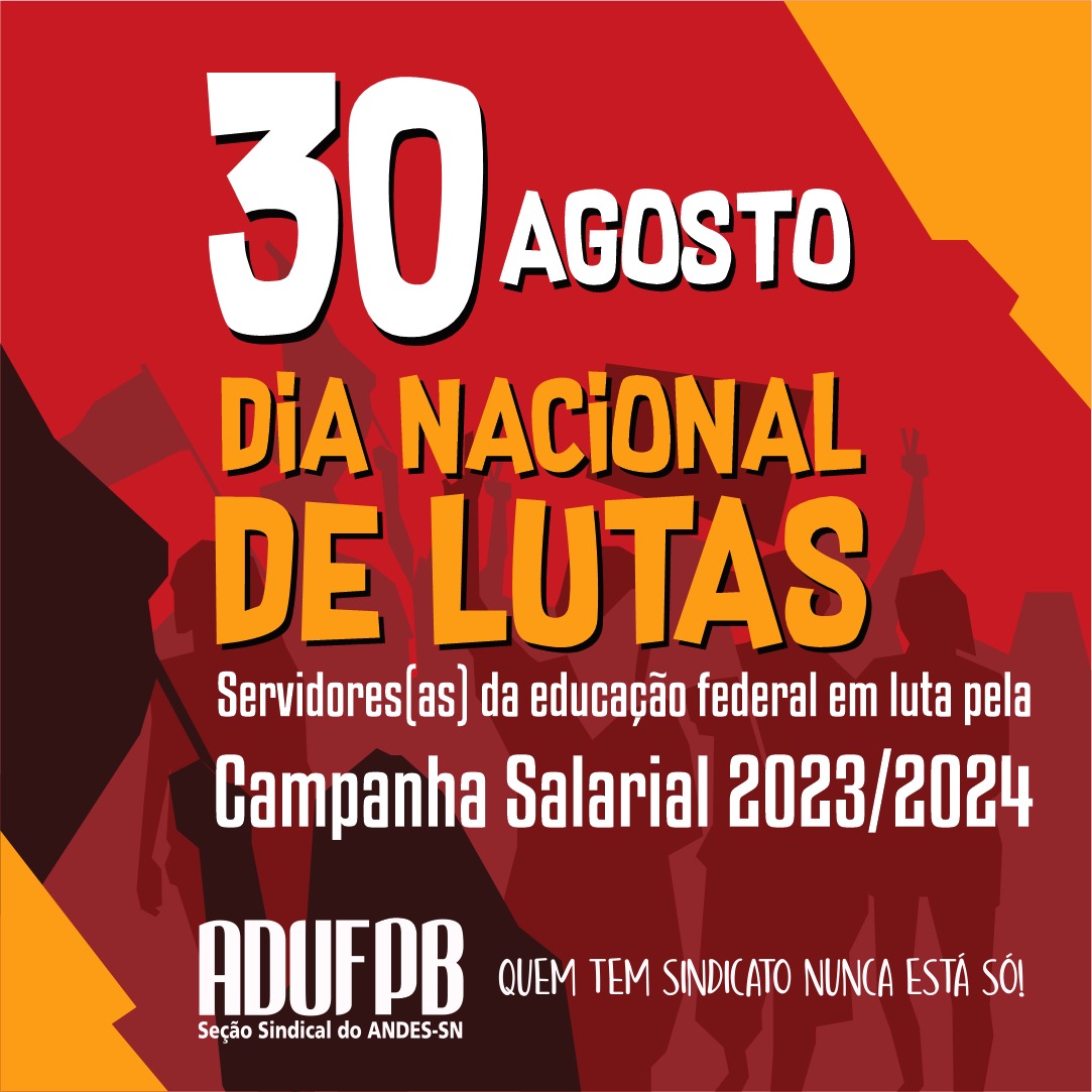 Nesta quarta-feira (30), os servidores públicos federais de todo o país participam de mais um Dia Nacional de Lutas para pressionar o governo a acatar as reivindicações da Campanha Salarial 2023/2024. Na UFPB, os docentes iniciam a mobilização às 7h, com uma panfletagem nos portões principais do campus I, em João Pessoa. Às 9h, será oferecido um café da manhã na sede da ADUFPB, no Centro de Vivência. Já às 10h, a categoria segue em caminhada pelo campus para convocar os docentes para defenderem a pauta de lutas da categoria.