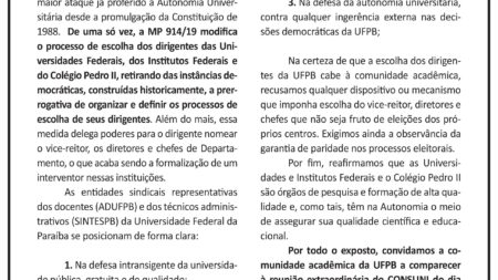 NOTA DA ADUFPB: A luta por democracia e autonomia universitária na UFPB tem sua primeira vitória 8 de março de 2020