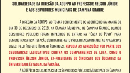 NOTA DE SOLIDARIEDADE AO PROFESSOR NELSON JÚNIOR E AOS SERVIDORES MUNICIPAIS DE CAMPINA GRANDE 1 de janeiro de 2020