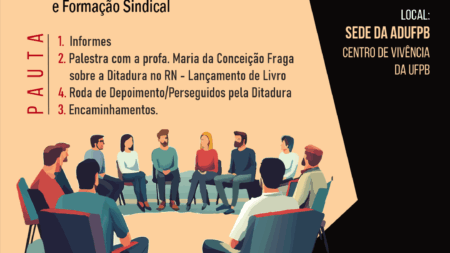 GT de Política e Formação Sindical reúne-se na próxima sexta-feira (11/7) na Sala de Leitura da ADUFPB 8 de julho de 2025
