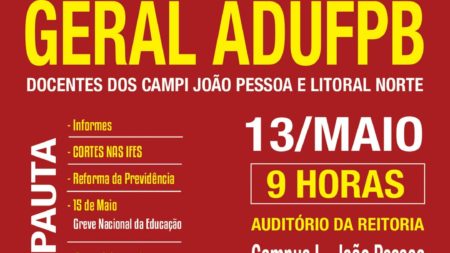 Entidades realizam plenária pública em defesa das universidades na próxima quarta-feira, na UFPB 6 de maio de 2019