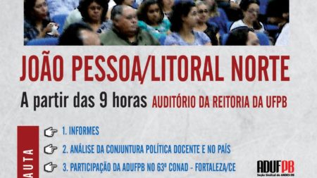 ADUFPB realiza Assembleia Geral nesta terça-feira, 29/05, em João Pessoa, Areia e Bananeiras 26 de maio de 2018