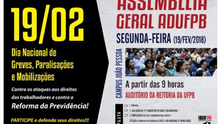 Fórum Paraibano em Defesa da Previdência promove nesta quinta-feira (15/02) plenária pública no Sintect/PB 14 de fevereiro de 2018