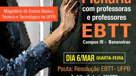 Resolução sobre encargos docentes EBTT é tema de plenária em Bananeiras na quarta-feira 4 de março de 2024