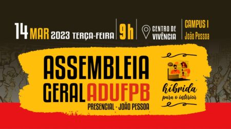 ADUFPB realiza assembleia geral nesta terça-feira (14), no Centro de Vivência, a partir das 9h 12 de março de 2023