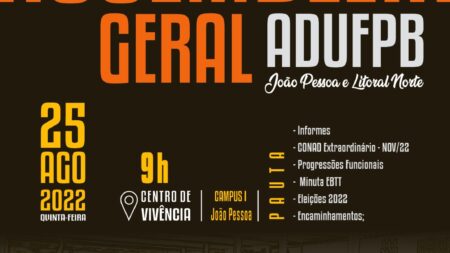 ADUFPB realiza assembleia quarta-feira (24), em Areia e Bananeiras, e na quinta (25), em João Pessoa 23 de agosto de 2022