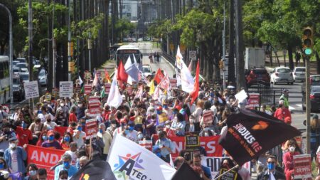 Ato “Pelas Liberdades Democráticas e em Defesa do Serviço Público” reúne milhares em Porto Alegre (RS) 4 de abril de 2022