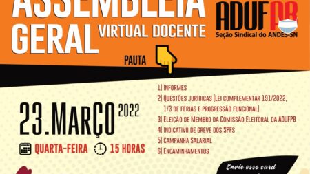 ADUFPB cria comissão de mobilização para unir a categoria a outras entidades em luta por reposição salarial 25 de março de 2022