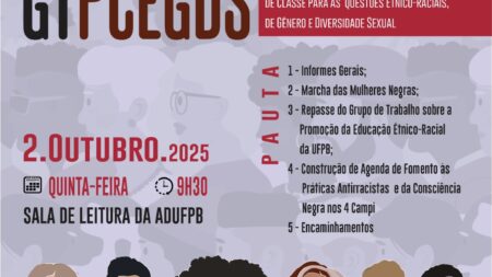ADUFPB promove reunião do Grupo de Trabalho sobre Questões Étnico-Raciais, de Gênero e Diversidade Sexual 26 de setembro de 2025