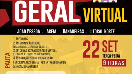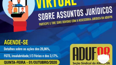 Plenária sobre assuntos jurídicos da ADUFPB será realizada nesta quinta-feira, dia 1º 28 de setembro de 2020