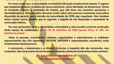Entidades contra intervenção na UFPB realizam reunião virtual nesta quinta-feira (24) 23 de setembro de 2020