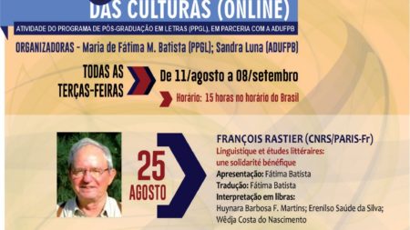 Ciclo de Conferências em Semiótica das Culturas recebe o pesquisador francês François Rastier nesta terça-feira (25) 23 de agosto de 2020
