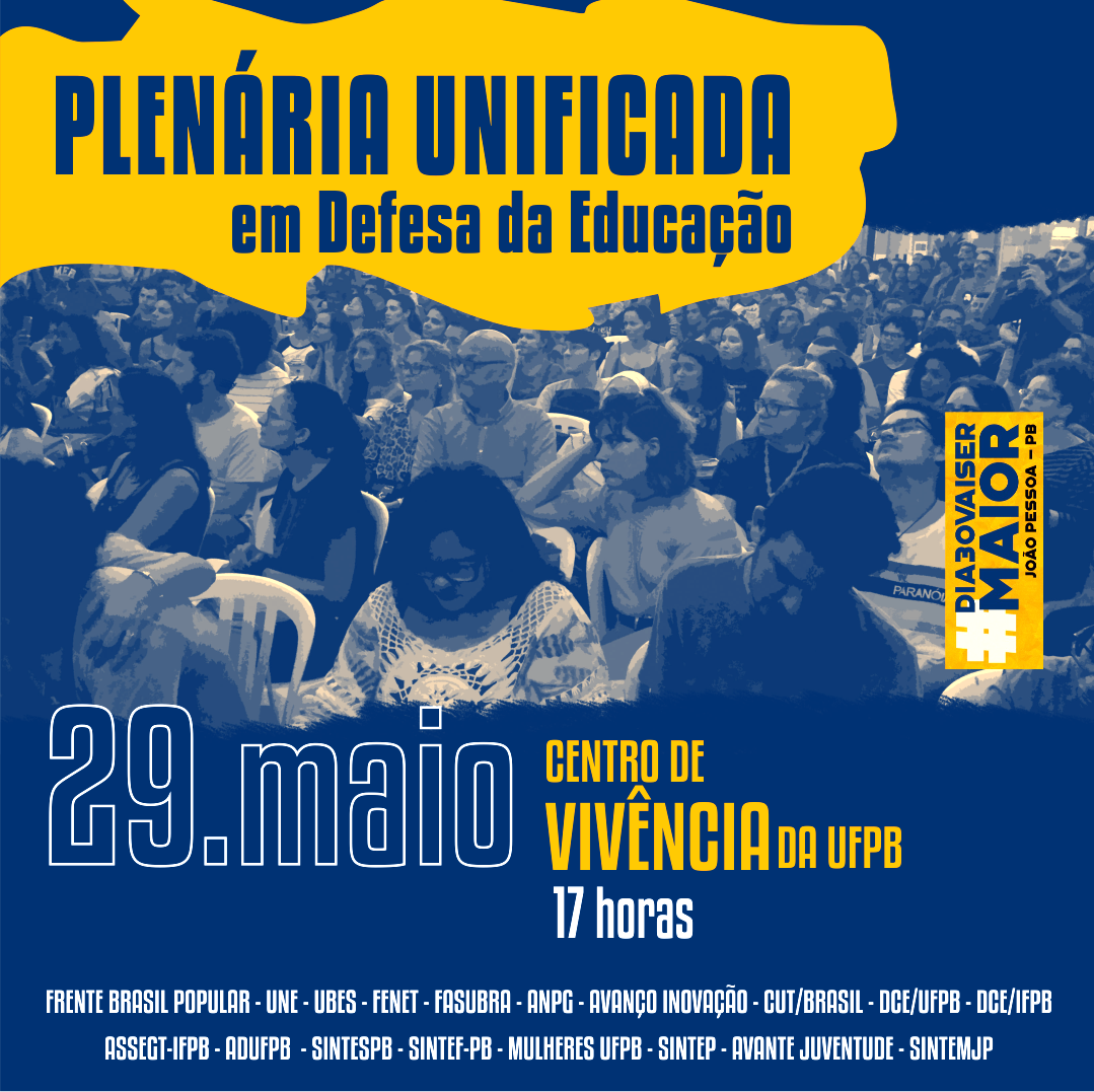 Professores, estudantes e trabalhadores do setor da educação realizam na próxima quarta-feira (29/5) mais uma plenária conjunta para discutir os cortes no orçamento das Instituições Federais de Ensino (IFEs) e preparar o grande ato nacional de 30 de maio. A atividade ocorrerá no Centro de Vivência do campus I da UFPB, em João Pessoa, a partir das 17h.