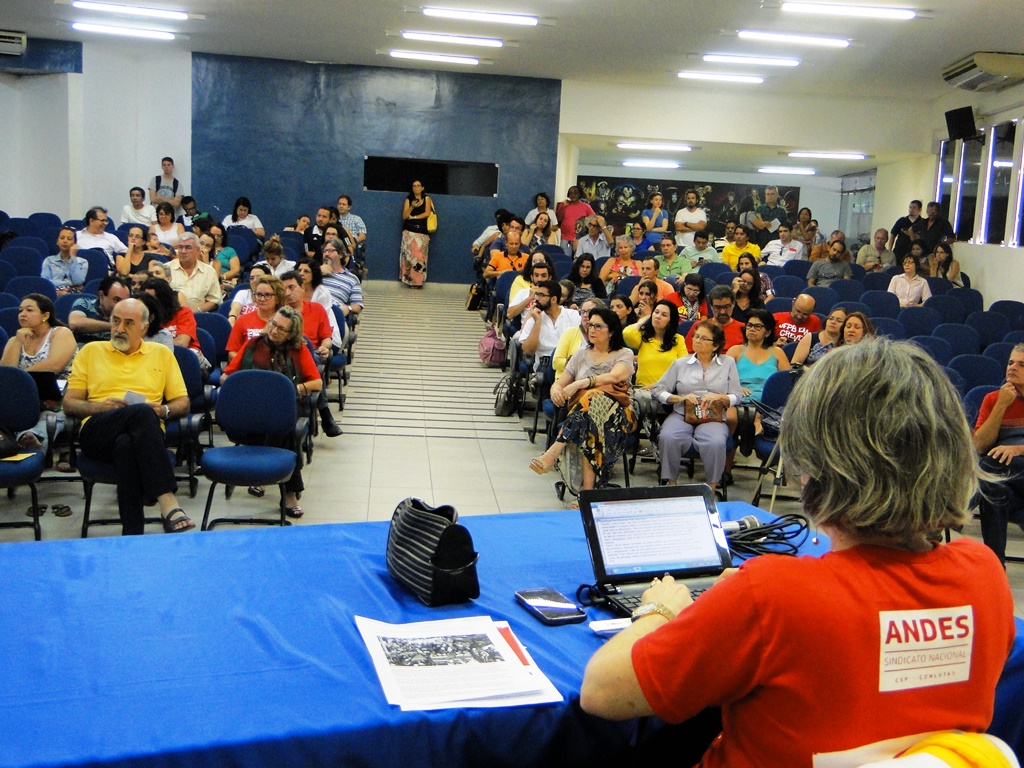 Na assembleia de João Pessoa, a professora Cristine Hirsch, que representou nas últimas semanas os professores da UFPB no Comando Nacional de Greve do Andes, em Brasília, deu informes sobre o movimento (leia aqui o texto com a análise).
