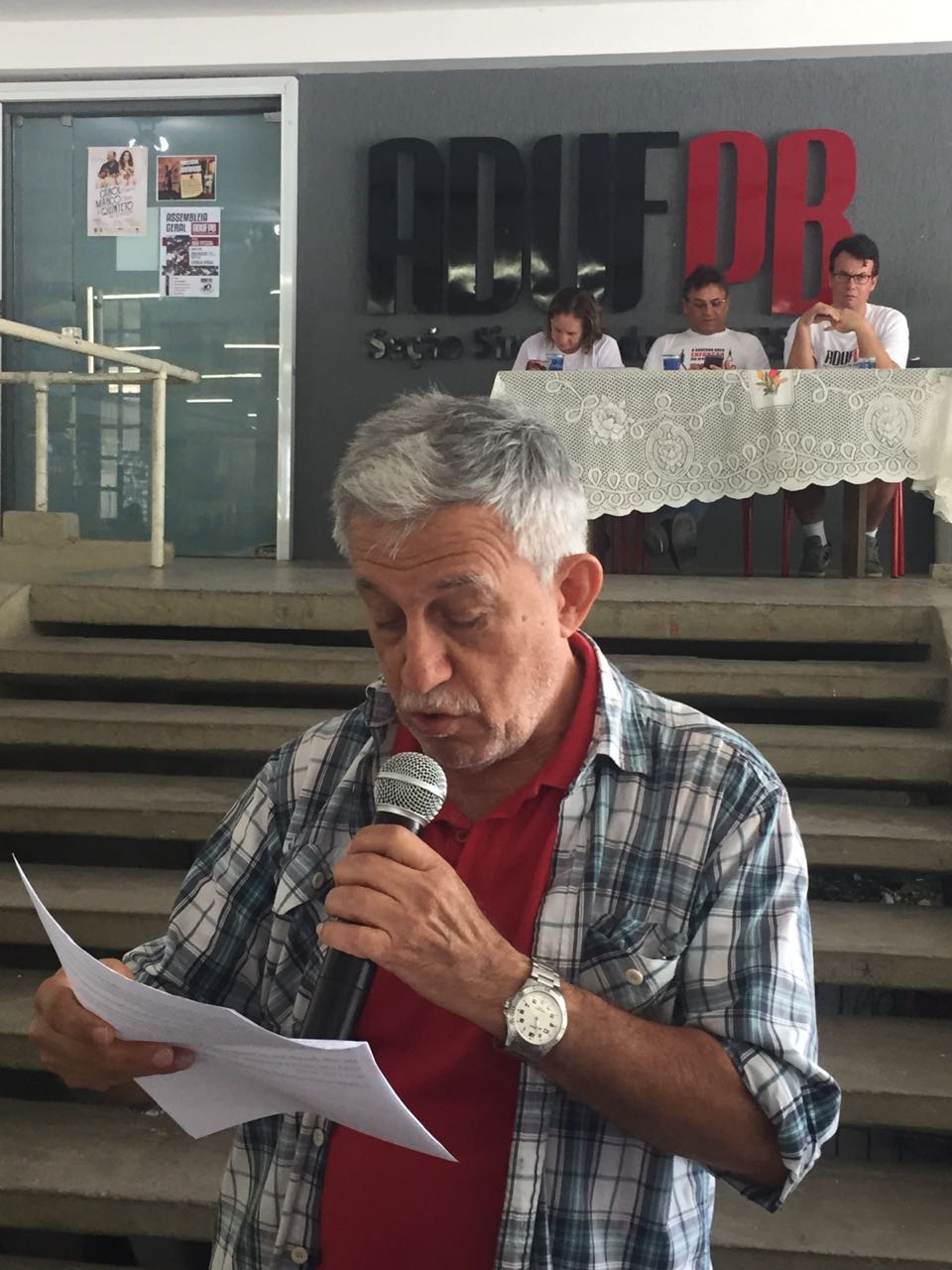 Em seguida, o vice-presidente da ADUFPB, Fernando Cunha, falou sobre as atividades de mobilização para o Dia Nacional do Basta – 10 de agosto, data escolhida pelas centrais sindicais para a realização de uma série de protestos e paralisações em todos os estados do país. Os eixos centrais de reivindicações são: a luta contra o desemprego, contra a terceirização e às Reformas Trabalhista e Previdenciária, contra as privatizações e pela redução no preço dos combustíveis e do gás de cozinha.