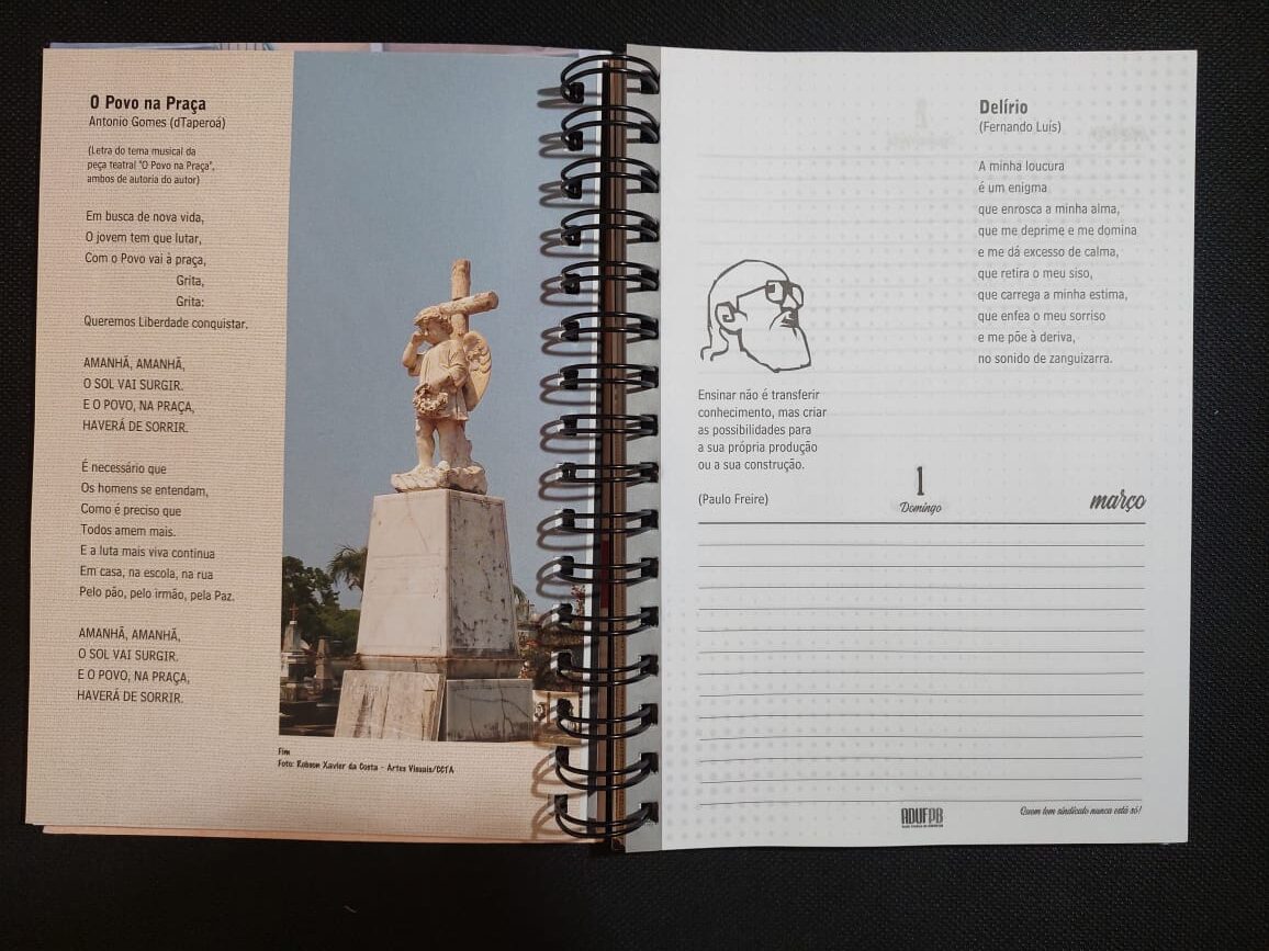 Professores e professoras podem colaborar com a Agenda ADUFPB 2022 encaminhando poemas e frases de autoria própria até o dia 30 de agosto. Para colaborar, basta encaminhar o texto para o e-mail adufpb@terra.com.br, aos cuidados de Célia Lopes. Os poemas serão selecionados pela Comissão Editorial da Agenda.