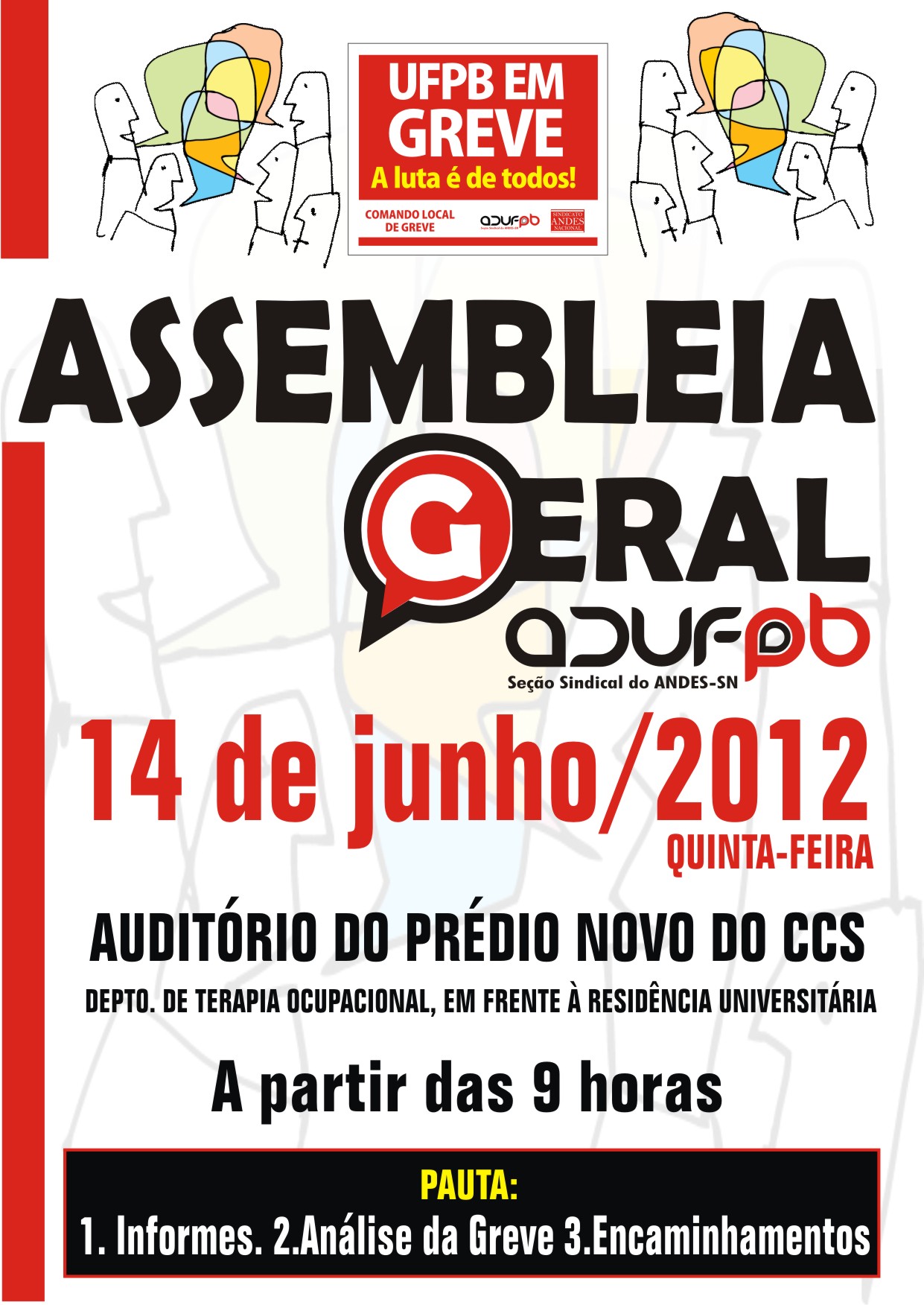 – 9h: Assembleia Geral – Auditório do Prédio novo do CCS – Deptº de Terapia Ocupacional