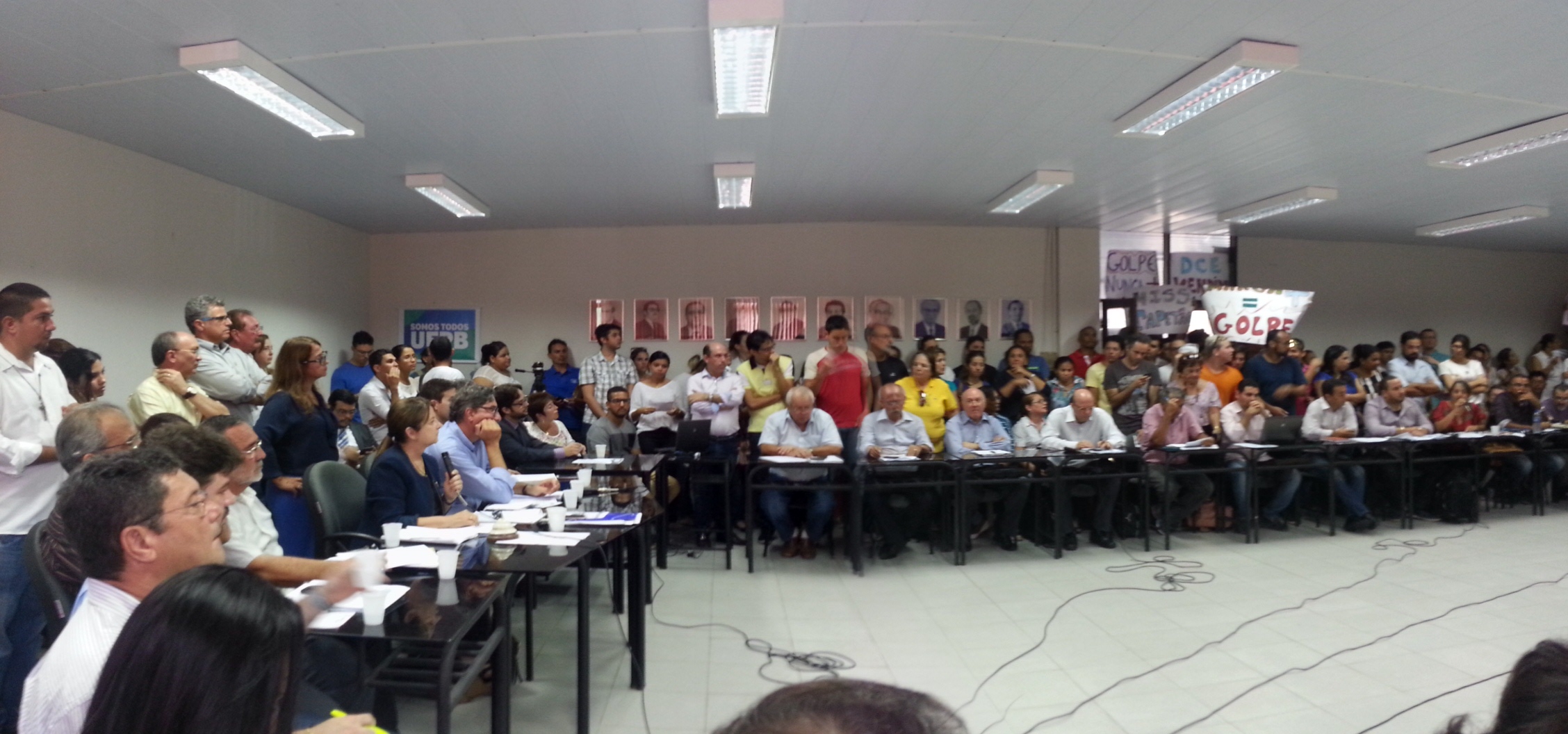 A reunião do Consuni teve início às 9h, na sala da Secretaria dos Órgãos Deliberativos da Administração Superior (Sods), no prédio da Reitoria. Muitos professores e estudantes estavam presentes para acompanhar o debate sobre o regimento da eleição. Após a reitora Margareth Diniz abrir a sessão, o relator do processo, professor Ângelo Brito, do CCS, leu parecer favorável ao texto, que define o dia 13 de abril como data do pleito e prevê a inclusão dos funcionários da Ebserh no colégio eleitoral (portanto com poder de voto).