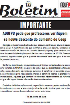 Boletim ADUFPB | nº 139 | Junho de 2016