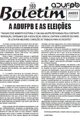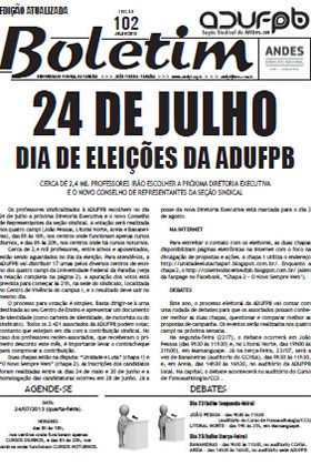 Boletim ADUFPB | nº 102 | Julho de 2013 – Especial Eleições