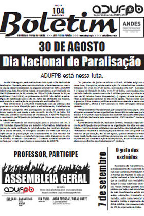 Boletim ADUFPB | nº 104 | Agosto de 2013