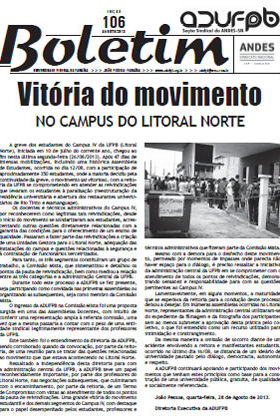Boletim ADUFPB | nº 106 | Agosto de 2013