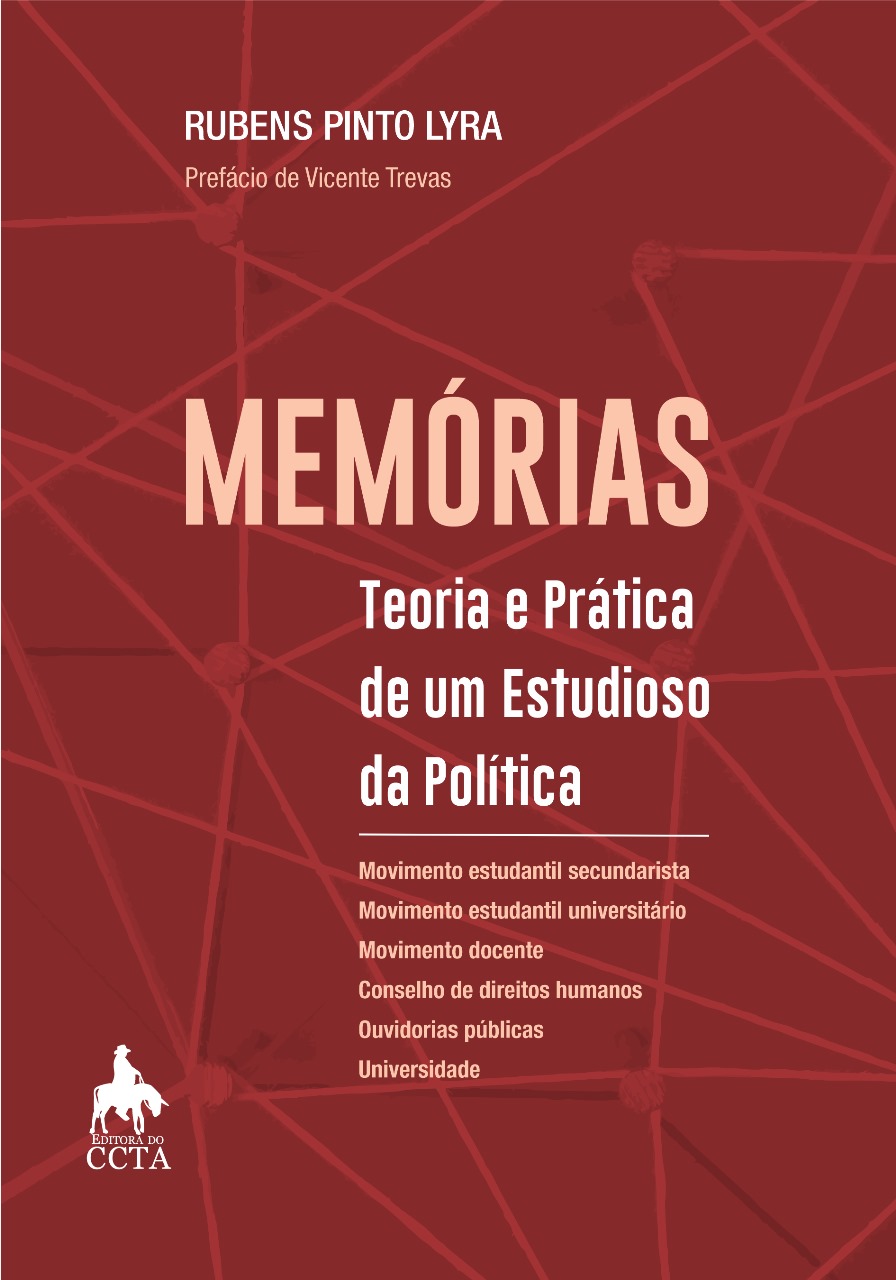 O professor Rubens Pinto Lyra acaba de lançar seu mais novo livro, “Memórias – Teoria e prática de um estudioso da política”, que reúne décadas de estudo, pesquisa e prática política. A obra promete ser uma viagem pela história política do Brasil dos últimos 65 anos, trazendo uma reflexão crítica e inconformista sobre o período. A publicação, que custa R$ 50, pode ser adquirida pela Amazon, nas lojas do Sebo Cultural ou diretamente com o autor, através do e-mail rubelyra@uol.com.br ou pelo telefone (83) 99984-6002.
