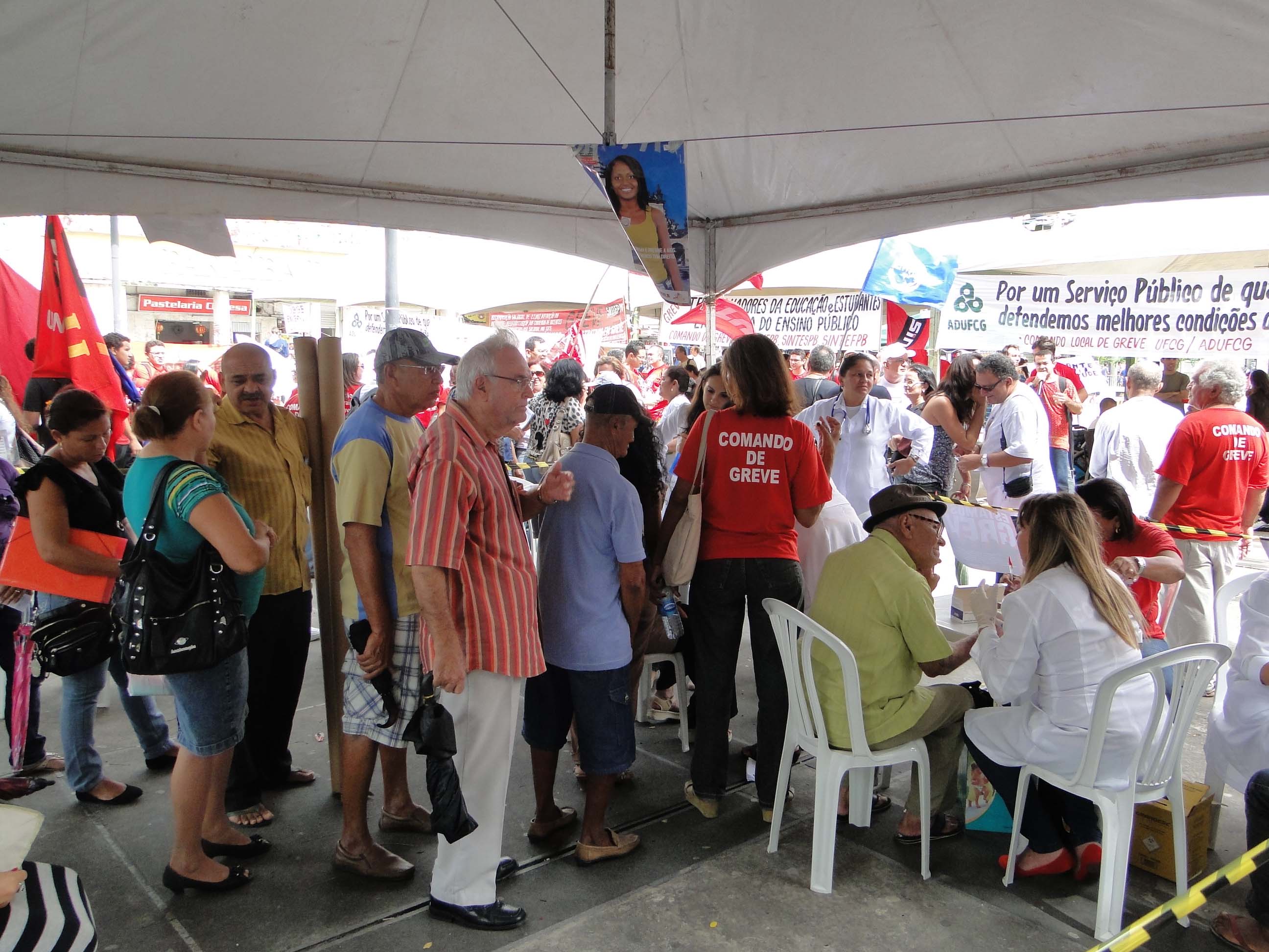 Os professores e funcionários técnico-administrativos das universidades federais da Paraíba (UFPB), de Campina Grande (UFCG) e do Instituto Federal de Educação, Ciência e Tecnologia da Paraíba (IFPB) e estudantes realizaram na quarta-feira (4/7), no Ponto de Cem Réis, em João Pessoa, um ato público em defesa da educação. O objetivo era divulgar para a sociedade o andamento do movimento grevista nessas instituições e alertar para a demora do Governo Federal em retomar o processo de negociação.
